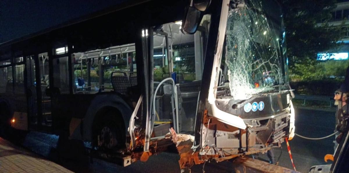 Τρελή πορεία ακολούθησε λεωφορείο στη Βουλιαγμένης στην Αττική το βράδυ της Τετάρτης όταν εν τέλει προσέκρουσε σε περίφραξη κτιρίου.