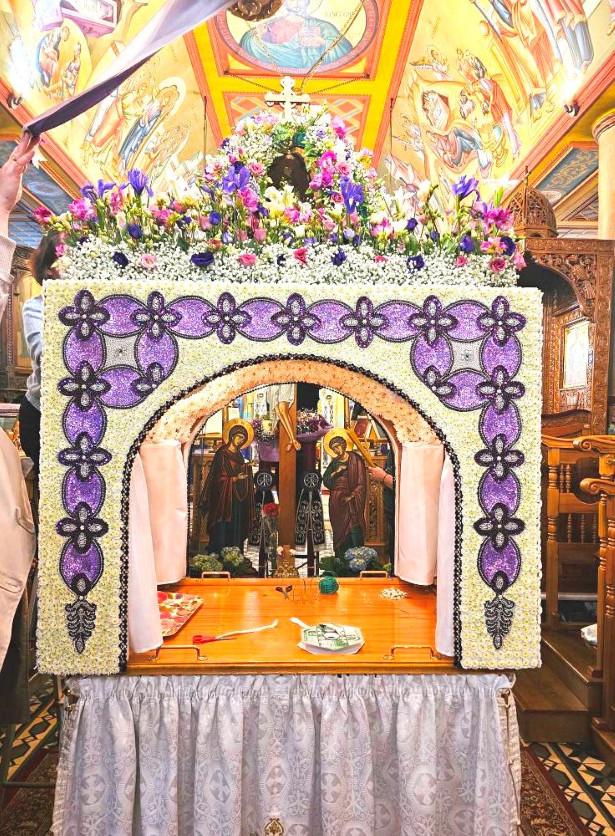 Χαλκιδική: Επιτάφιος «κόσμημα» – 200.000 χάντρες και χιλιάδες χρυσάνθεμα (ΦΩΤΟ)