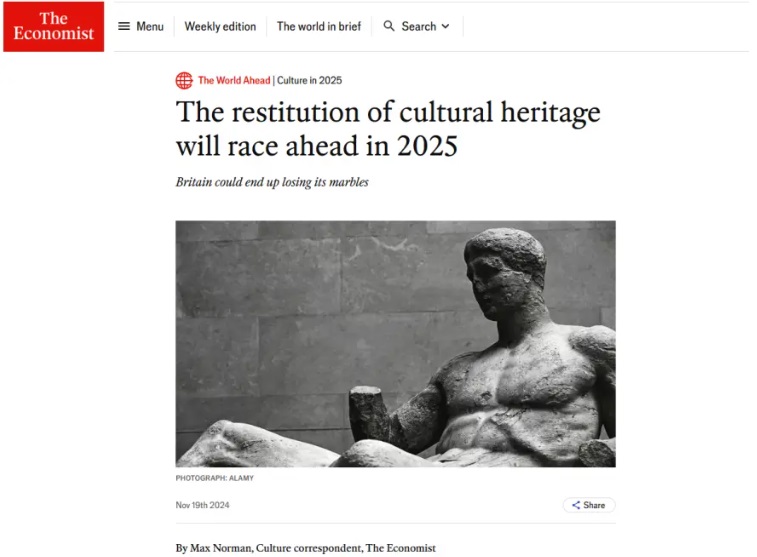 Το κορυφαίο βρετανικό περιοδικό δίνει όμως και μια άλλη διάσταση λέγοντας πως σε παγκόσμιο επίπεδο, την επόμενη χρονιά, ο επαναπατρισμός πολιτιστικών κειμηλίων στις χώρες προέλευσης τους θα προχωρήσει με γοργούς ρυθμούς.