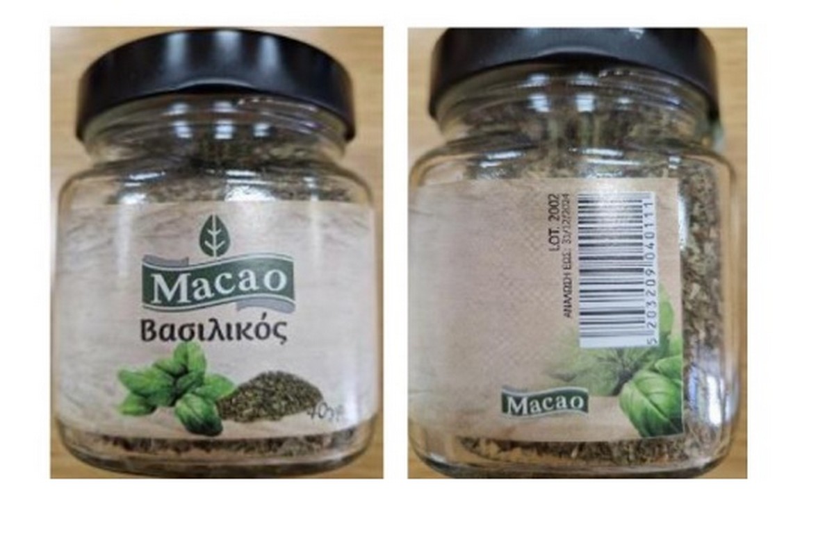 Πρόκειται για το προϊόν με την εμπορική ονομασία “Macao” σε γυάλινη συσκευασία των 40 γρ., με αριθμό παρτίδας Lot 2002 και ημερομηνία ανάλωσης 31/12/2024, το οποίο συσκευάζεται και διανέμεται στην Ελλάδα από την ΚΙΟΣΟΓΛΟΥ ΑΝ. & ΣΙΑ Ο.Ε.