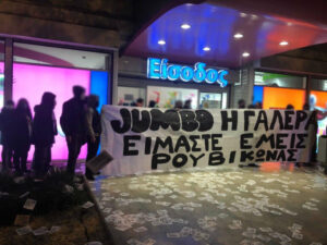 Μέλη του Ρουβίκωνα κατήγγειλαν το καθεστώς των εργασιακών σχέσεων που επικρατεί στα Jumbo.