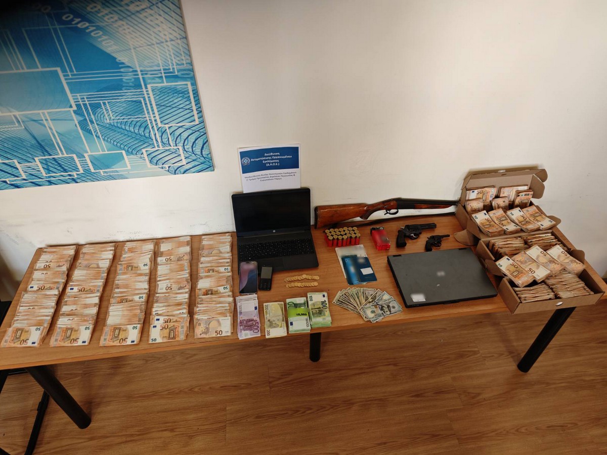 Από τις έρευνες που πραγματοποιήθηκαν σε οικίες, λογιστικά γραφεία, κελί κράτησης εντός σωφρονιστικού καταστήματος, γραφεία σε ποδοσφαιρικό γήπεδο και οχήματα, με τη συνδρομή Επιχειρησιακών Ομάδων της Διεύθυνσης Αντιμετώπισης Οργανωμένου Εγκλήματος, καθώς και εξειδικευμένων στελεχών της Διεύθυνσης Εγκληματολογικών Ερευνών, βρέθηκαν μεταξύ άλλων και κατασχέθηκαν: