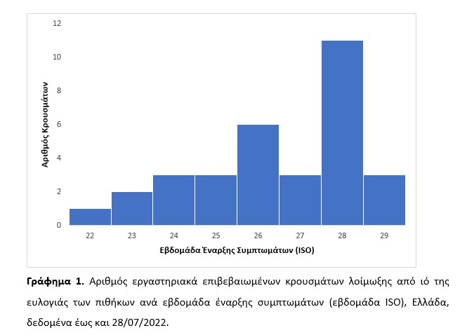 Τα στοιχεία που παρουσιάζονται στην παρούσα έκθεση αφορούν στα εργαστηριακά επιβεβαιωμένα κρούσματα της λοίμωξης από ιό της ευλογιάς των πιθήκων στην Ελλάδα, βάσει των δεδομένων που έχουν δηλωθεί στον ΕΟΔΥ και έχουν καταγραφεί μέχρι τις 28 Ιουλίου 2022.