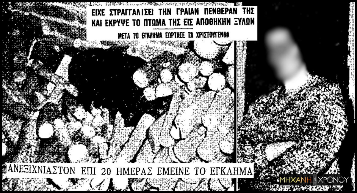 Τον Δεκέμβριο του 1960 η 35χρονη Βασιλική στραγγαλίζει την 75χρονη πεθερά της, Ασπασία, και κρύβει το πτώμα της σε μία γεμάτη με πράγματα αποθηκούλα στο σπίτι τους στη Βέροια. Ο γιος του θύματος, αν και αναρωτήθηκε για την απουσία της μητέρας του, και παρότι αργότερα απευθύνθηκε στη Χωροφυλακή, έπρεπε να περάσουν συνολικά 22 μέρες για να αποκαλυφθεί το άγριο έγκλημα, κυριολεκτικά από τη μυρωδιά. Εν τέλει, η σορός της γυναίκας εντοπίζεται κάτω από καυσόξυλα στη γεμάτη με πράγματα αποθηκούλα και η θανάσιμη νύφη καταδικάζεται σε δεκαετή κάθειρξη, αφού της αναγνωρίστηκαν ελαφρυντικά.