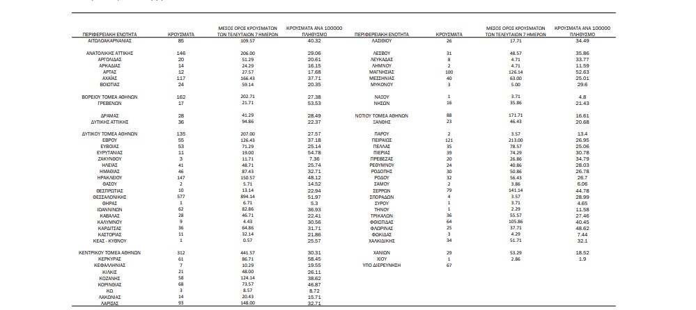 Η διασπορά των νέων κρουσμάτων – Η εικόνα Θεσσαλονίκης – Αττικής