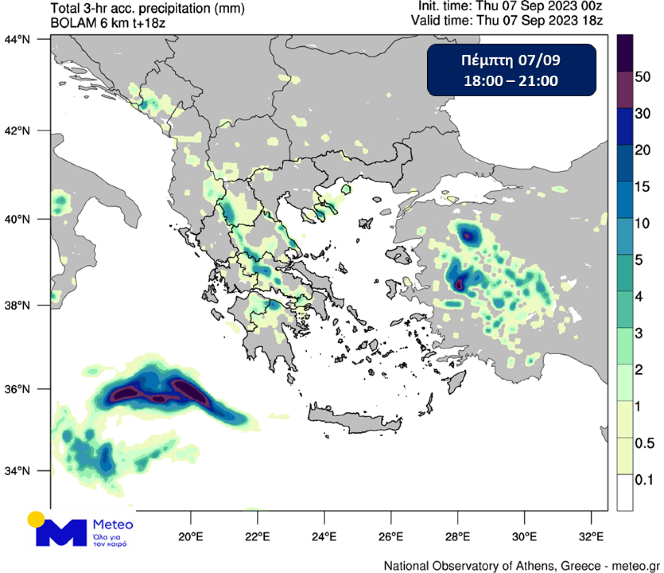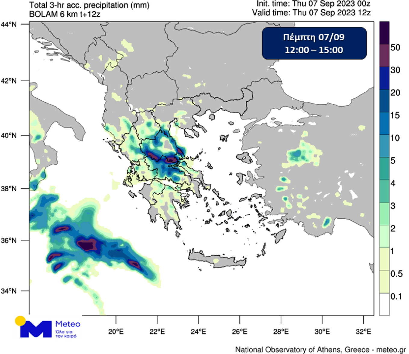 Δείτε χάρτη με τα μεγαλύτερα ύψη βροχής μέχρι τις 3 μετά το μεσημέρι