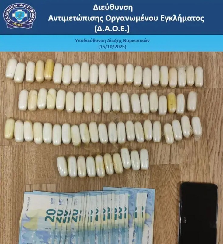 Από τον έλεγχο προέκυψε ότι ο 22χρονος είχε καταπιεί 72 αυτοσχέδιες ωοειδείς συσκευασίες, οι οποίες περιείχαν συνολικά 840 γραμμάρια κοκαΐνης. Επιπλέον, στην κατοχή του βρέθηκαν και κατασχέθηκαν 560 ευρώ και ένα κινητό τηλέφωνο.