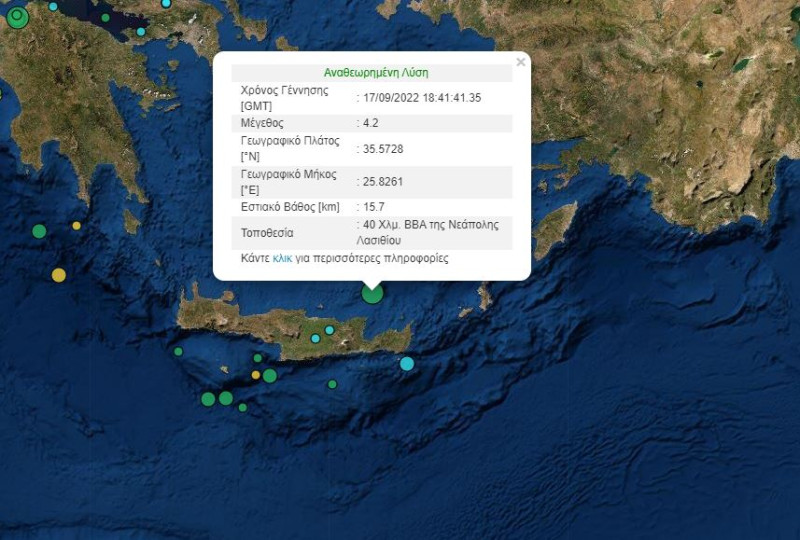 Κρήτη: Σεισμός 4,2 Ρίχτερ ανοιχτά του Λασιθίου