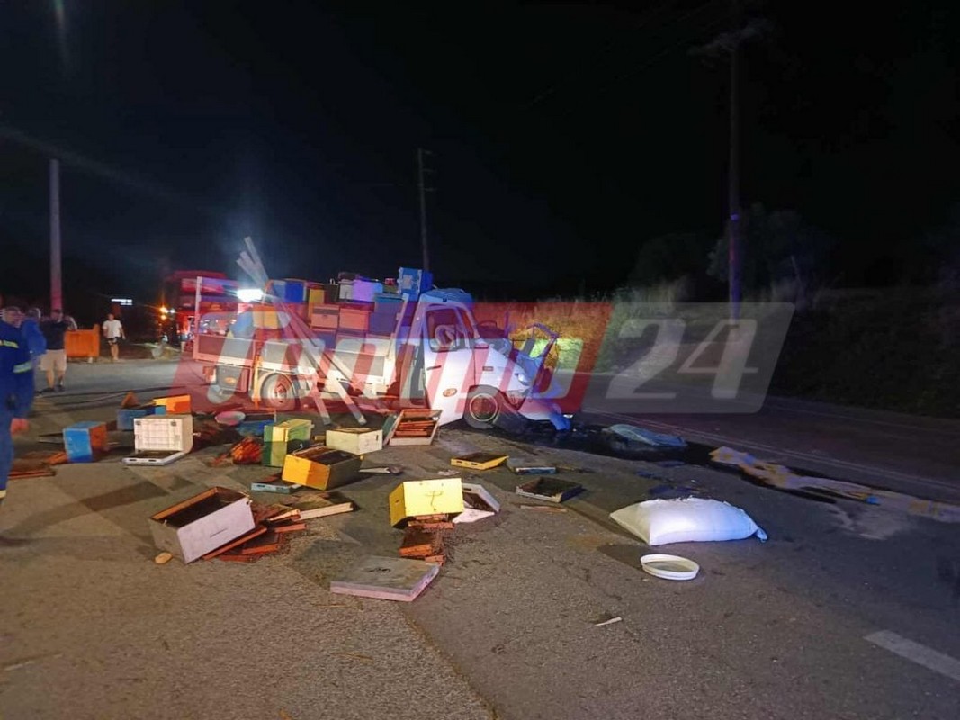 Σύμφωνα με το tempo24.gr, μια νταλίκα συγκρούστηκε με φορτηγάκι που μετέφερε μελίσσια και οδηγούσε ένας 60χρονος.
