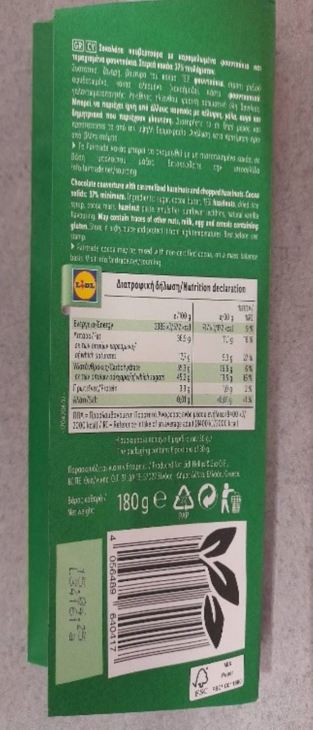 Σύμφωνα με τον φορέα, πρόκειται για το προϊόν «VEGAN ΣΟΚΟΛΑΤΑ ΜΕ ΦΟΥΝΤΟΥΚΙΑ, VEMONDO» σε συσκευασία των 180gr, με αριθμό παρτίδας L 34161a και ημερομηνία ανάλωσης κατά προτίμηση, πριν από 15.04.25 που διακινείται από την Εταιρεία Lidl Hellas.