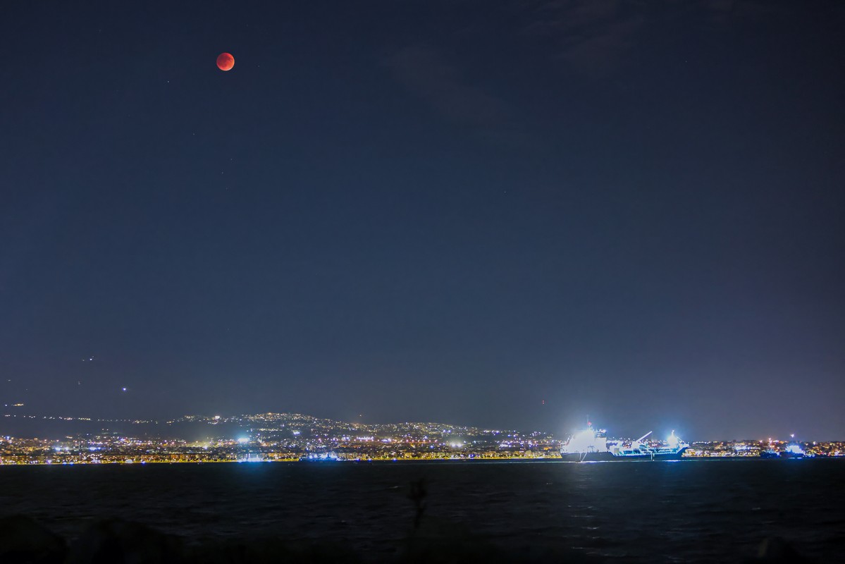 Το «Ματωμένο Φεγγάρι» εντυπωσίασε για μια ακόμη φορά όχι μόνο τη Θεσσαλονίκη, αλλά και όλο τον κόσμο, αφού φέτος η πανσέληνος συνοδεύτηκε από ολική έκλειψη της Σελήνης, χαρίζοντάς της μια κοκκινωπή απόχρωση.