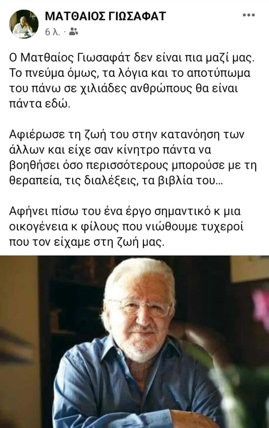 Πέθανε ο κορυφαίος Έλληνας ψυχίατρος, Ματθαίος Γιωσαφάτ