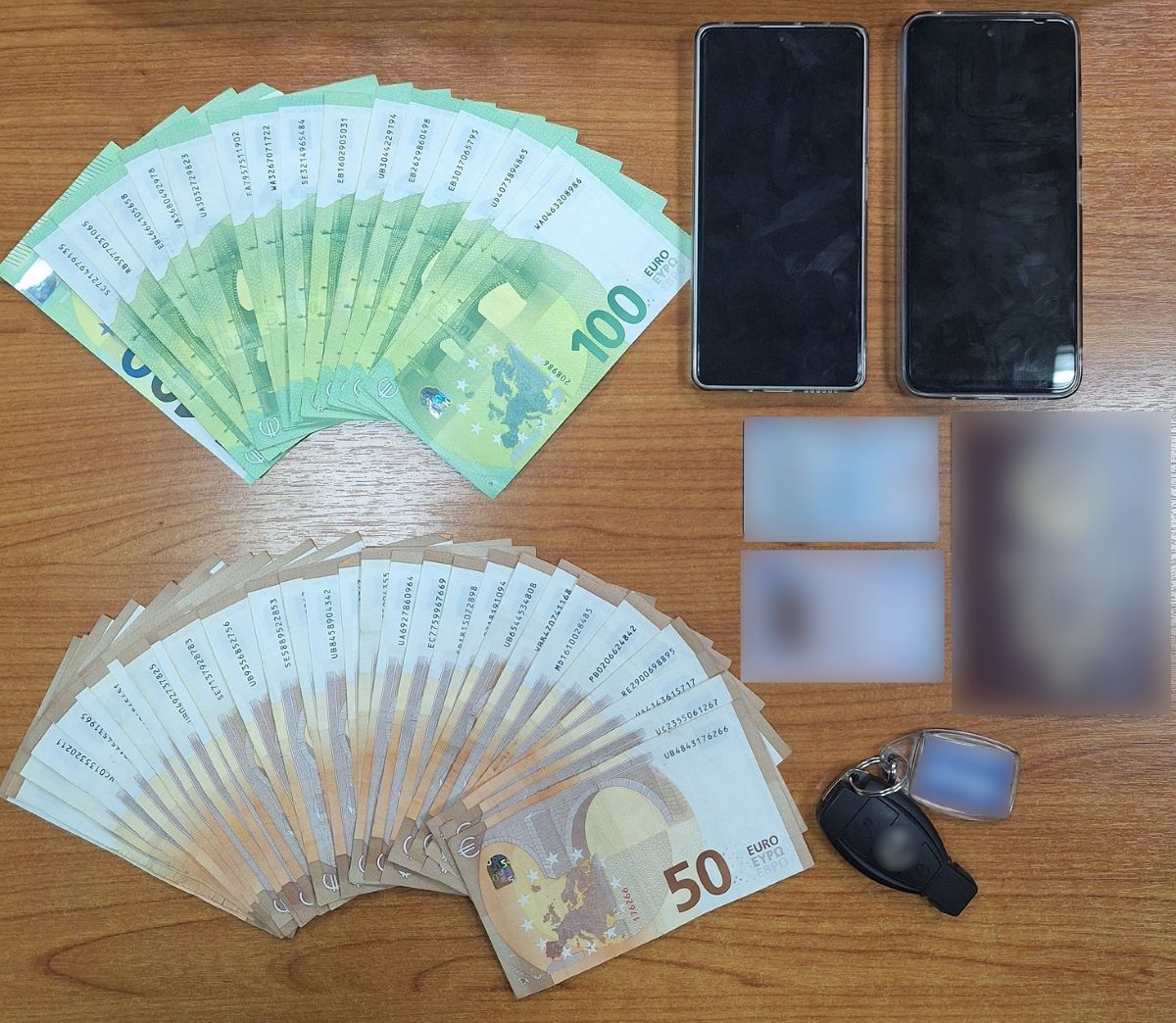 Στην κατοχή του βρέθηκαν και κατασχέθηκαν το χρηματικό ποσό των 3.100 ευρώ και δύο κινητά τηλέφωνα.