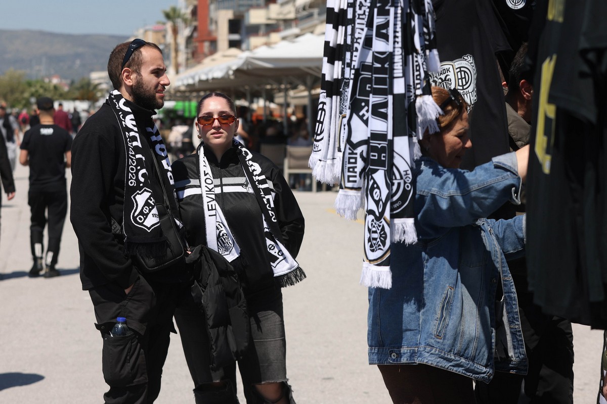 Από νωρίς το πρωί του Σαββάτου 25 Απριλίου δίνουν τον παλμό του τελικού κυπέλλου Ελλάδας φίλοι του ΠΑΟΚ που ταξίδεψαν από όλη τη χώρα, και κυρίως από τη Θεσσαλονίκη, μέχρι τον Βόλο για να υποστηρίξουν τον Δικέφαλο του Βορρά.