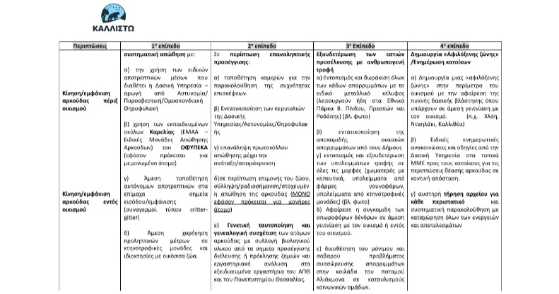 «Παράλληλα με τις παραπάνω προτάσεις, η Περιβαλλοντική Οργάνωση “Καλλιστώ”, λαμβάνοντας υπόψη πως τίθεται συχνά το ερώτημα για τον εάν η αύξηση της συχνότητας των περιστατικών συνδέεται και με μια γενικότερη πληθυσμιακή αύξηση, θεωρεί πως πρέπει να γίνει απαραιτήτως μια επανεκτίμηση του πληθυσμού και σύγκριση των αποτελεσμάτων με το 2014.