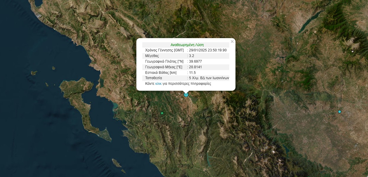 Σεισμός 3,2 Ρίχτερ στα Ιωάννινα – Αισθητός σε αρκετές περιοχές