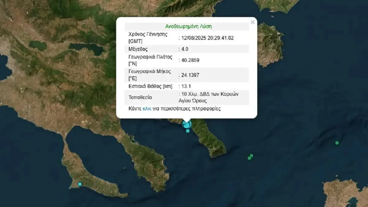 Σεισμός 4 Ρίχτερ στις Καρυές του Αγίου Όρους