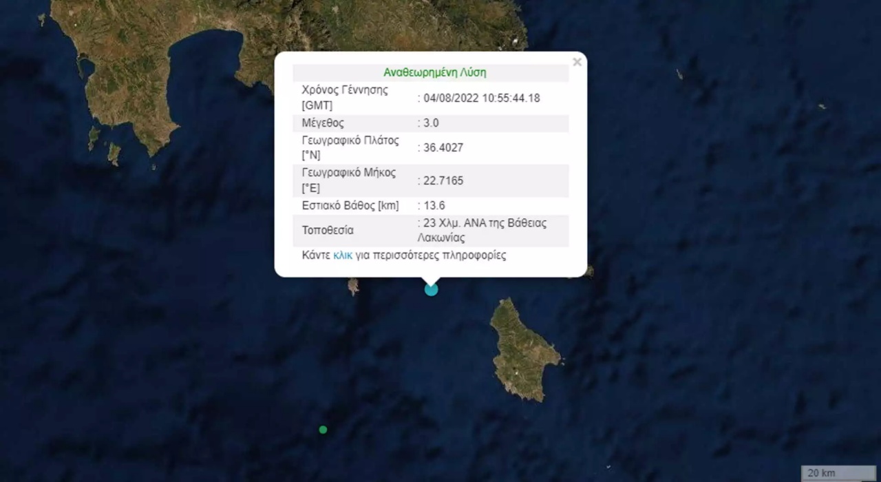 Το εστιακό βάθος εντοπίζεται στα 13,6 χιλιόμετρα και έγινε 55 λεπτά μετά τις 12:00 της Πέμπτης (4/8).