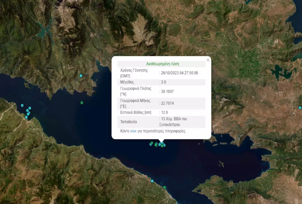 Σύμφωνα με το Γεωδυναμικό Ινστιτούτο, ο σεισμός στον Κορινθιακό Κόλπο ήταν ισχύος 3 Ρίχτερ και είχε επίκεντρο 13 χιλιόμετρα βορειοανατολικά του Ξυλοκάστρου.