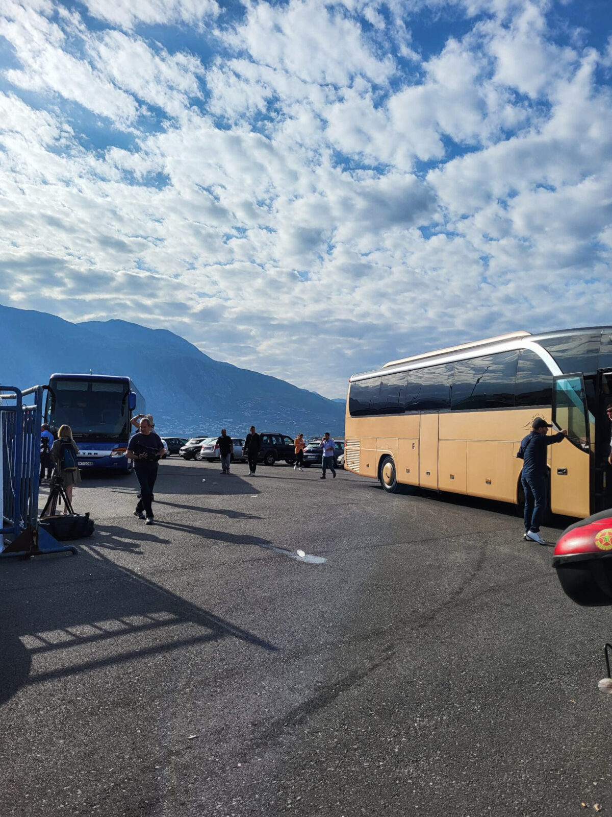 Τα μισθωμένα από τον Δήμο Καλαμάτας λεωφορεία που τους μετέφεραν, ξεκίνησαν νωρίς το πρωί από το λιμάνι της μεσσηνιακής πρωτεύουσας.