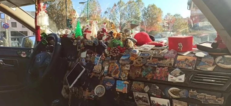 Με κάθε λογής πράγματα στόλισε το όχημα του ένας οδηγός ταξί από τα Τρίκαλα, με αφορμή τις γιορτές των Χριστουγέννων.