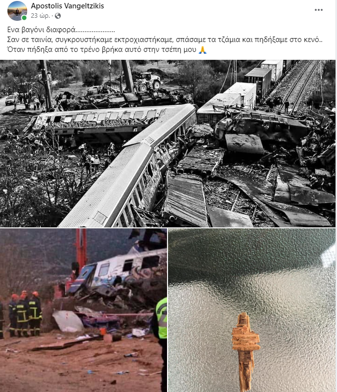 Ένας από τους τυχερούς που βγήκε σώος από τα βαγόνια, είναι ο διαιτητής χάντμπολ, Αποστόλης Βαγγελτζικής, ο οποίος μίλησε στο TheOpinion για τα όσα έζησε εκείνη την τραγική στιγμή αλλά και αυτά που ακολούθησαν, με τον ίδιο να ευχαριστεί τον Θεό που είναι καλά στην υγεία του.