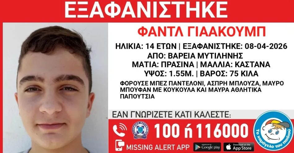 Συναγερμός έχει σημάνει στις Αρχές για την εξαφάνιση ενός 14χρονου από χώρο φιλοξενίας ασυνόδευτων ανηλίκων στην περιοχή της Βαρειάς Μυτιλήνης.