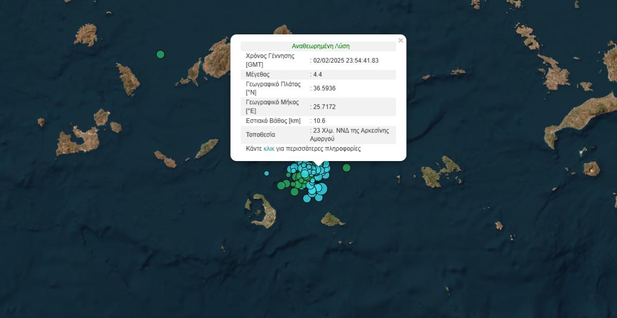 Σύμφωνα με το Γεωδυναμικό Ινστιτούτο το επίκεντρο της δόνησης εντοπίστηκε 22 χλμ νότια της Αμοργού και το εστιακό βάθος ήταν στα 10 χλμ.
