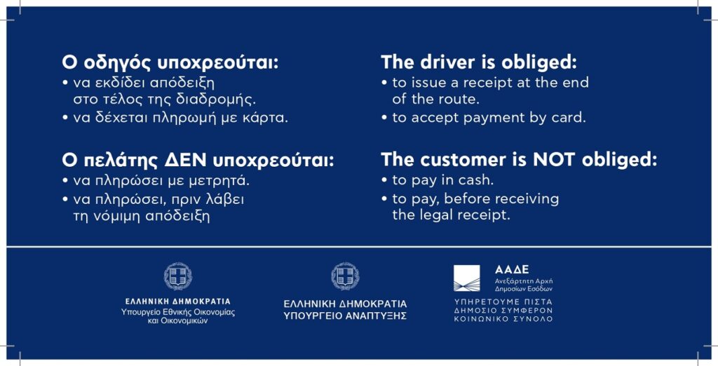 -Να εκδίδει απόδειξη στο τέλος της διαδρομής.