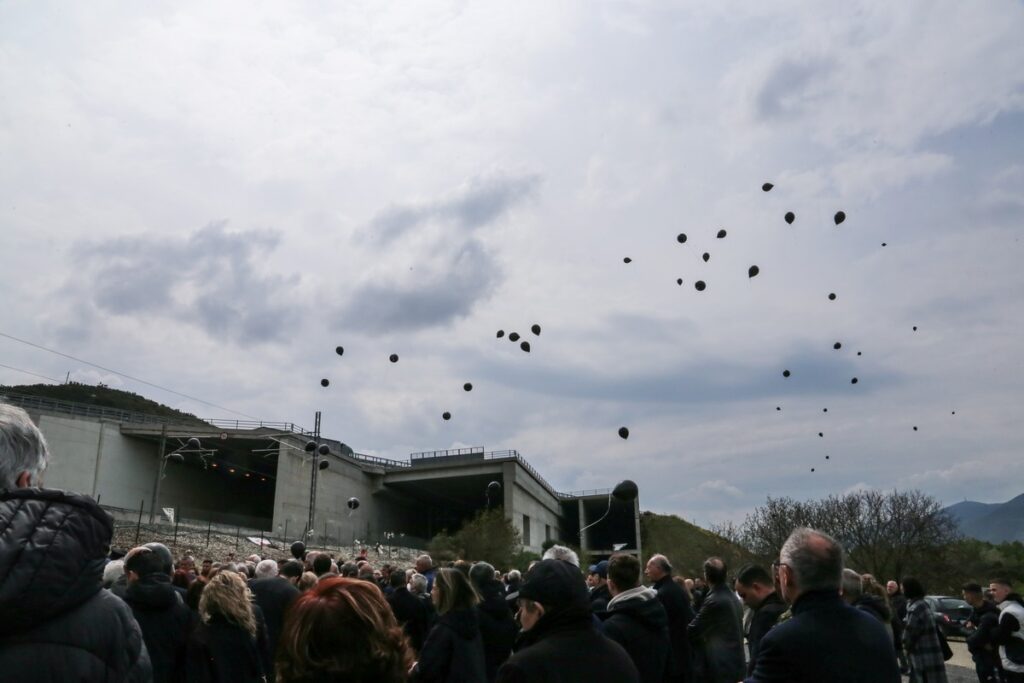 (ΛΕΩΝΙΔΑΣ ΤΖΕΚΑΣ/EUROKINISSI)Επιμνημόσυνη δέηση για τους 57 νεκρούς του τραγικού δυστυχήματος στα Τέμπη, Κυριακή 9 Απριλίου 2023.