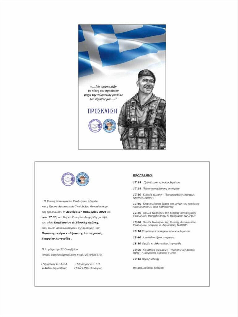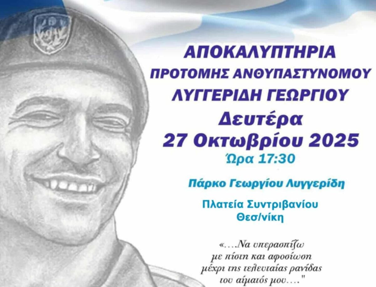 «Τα αποκαλυπτήρια της προτομής του Γιώργου μας, θα γίνουν τη Δευτέρα 27 Οκτωβρίου 2025, στις 17:30, στο πάρκο «Γεωργίου Λυγγερίδη» (Καμβουνίων & Εθνικής Αμύνης) στη Θεσσαλονίκη.