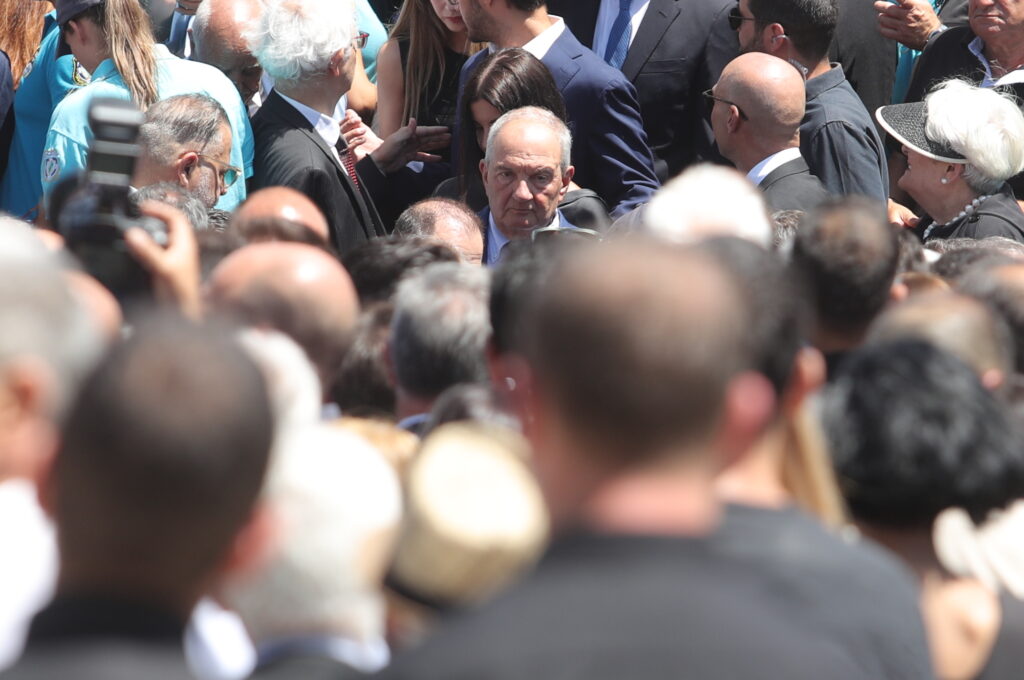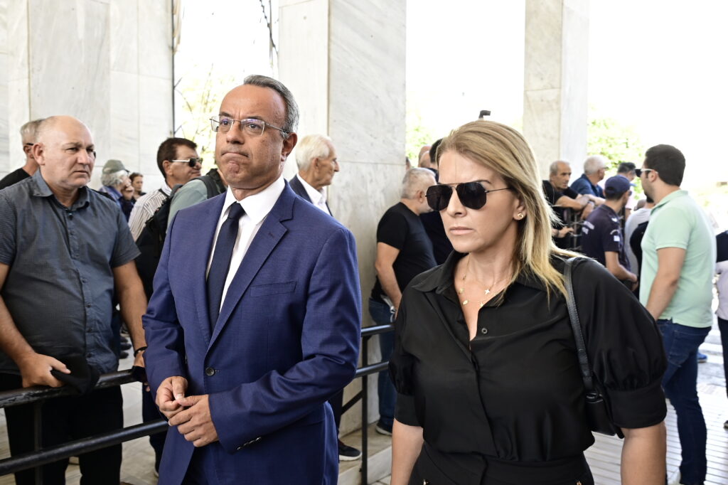 Στην κηδεία παραβρέθηκαν , μεταξύ άλλων, ο Πρόεδρος της Δημοκρατίας Κωνσταντίνος Τασούλας, ο πρωθυπουργός Κυριάκος Μητσοτάκης με τη σύζυγό του Μαρέβα, ο κυβερνητικός εκπρόσωπος Παύλος Μαρινάκης, ο υπουργός Εθνικής Άμυνας Νίκος Δένδιας, η υπουργός Εργασίας Νίκη Κεραμέως, η υπουργός Τουρισμού Όλγα Κεφαλογιάννη, ο υπουργός Ναυτιλίας Βασίλης Κικίλιας, η υπουργός Πολιτισμού Λίνα Μενδώνη, ο υπουργός Αγροτικής Ανάπτυξης Κώστας Τσιάρας, ο υπουργός Πολιτικής Προστασίας Γιάννης Κεφαλογιάννης, η ευρωβουλευτής της ΝΔ Ελίζα Βόζμπεργκ, αλλά και οι Θάνος Πλεύρης, Βασίλης Γιόγιακας, Διονύσης Σταμενίτης, Γρηγόρης Δημητριάδης, Σοφία Βούλτεψη, Μίλτος Χρυσομάλλης, Ανδρέας Κατσανιώτης.