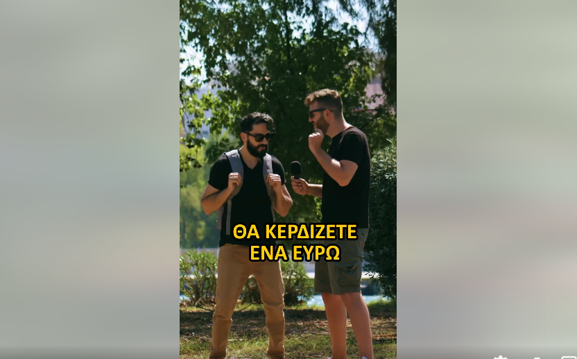 Στο σκετσάκι συμμετέχει σε διαγωνισμό δρόμου όπου ο δημοσιογράφος τον ρωτά για «πράγματα από τα οποία κινδυνεύεις να πεθάνεις στην Ελλάδα» κερδίζοντας ένα ευρώ για κάθε σωστή απάντηση.