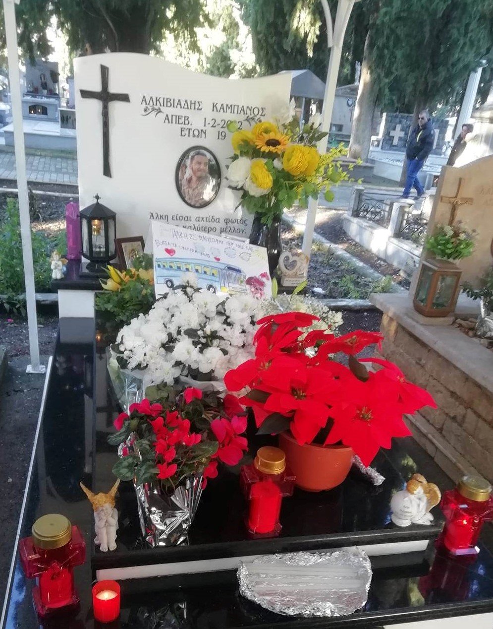 Γονείς, συγγενείς και φίλοι συγκινημένοι συγκεντρώθηκαν στον τάφο του 19χρονου κι ανάψαν ένα κερί στη μνήμη του.