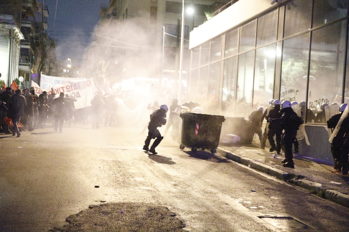 Λίγο μετά τις 19:00 η αστυνομία έκανε χρήση κρότου-λάμψης εναντίον των διαδηλωτών προχωρώντας σε εκτεταμένη καταστολή.