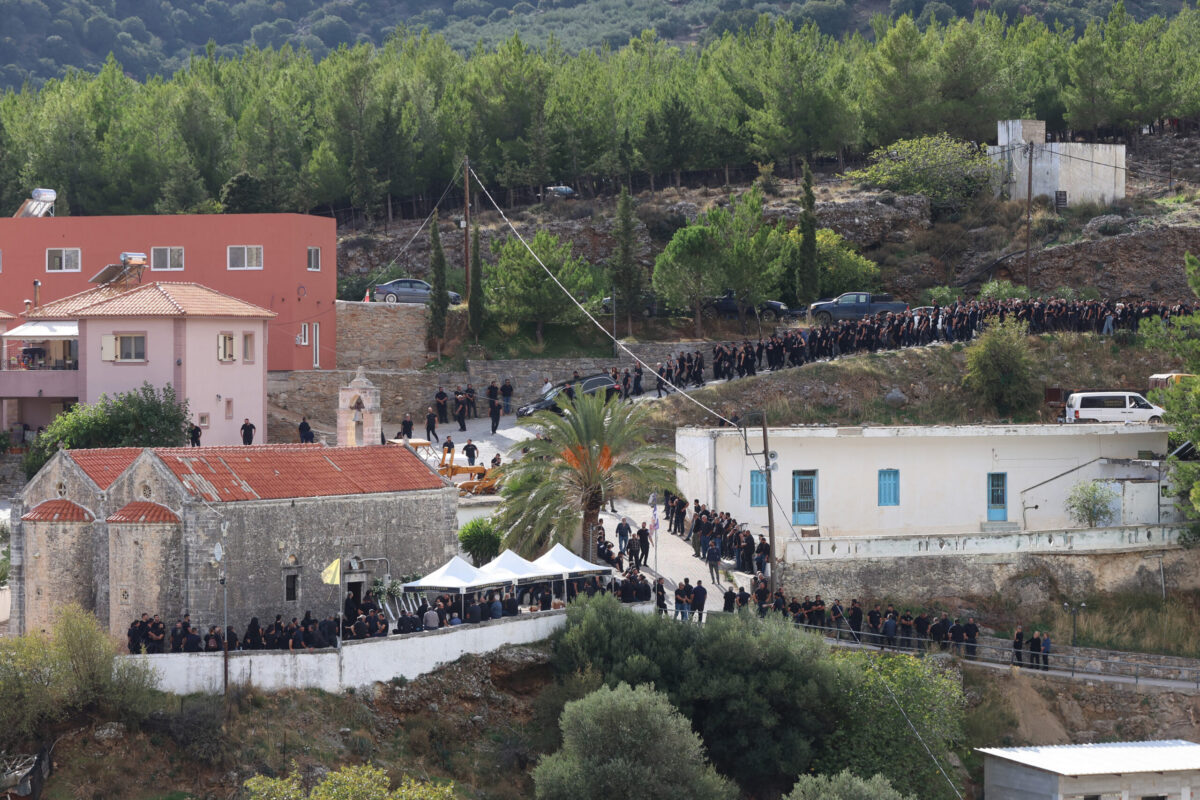 Πλήθος κόσμου έδωσε το ”παρών” στην κηδεία στον Ιερό Ναό Ευαγγελισμού της Θεοτόκου, με τις αστυνομικές δυνάμεις να είναι ενισχυμένες και παραταγμένες σε διάφορα σημεία του χωριού αλλά και της ευρύτερης περιοχής. Κατά τη μεταφορά της σορού από το σπίτι προς την εκκλησία, η πομπή σταμάτησε για λίγο στο σημείο όπου εκτυλίχθηκε το μακελειό, με μέλη της οικογένειας του 39χρονου να ξεσπούν σε λυγμούς και φωνές.