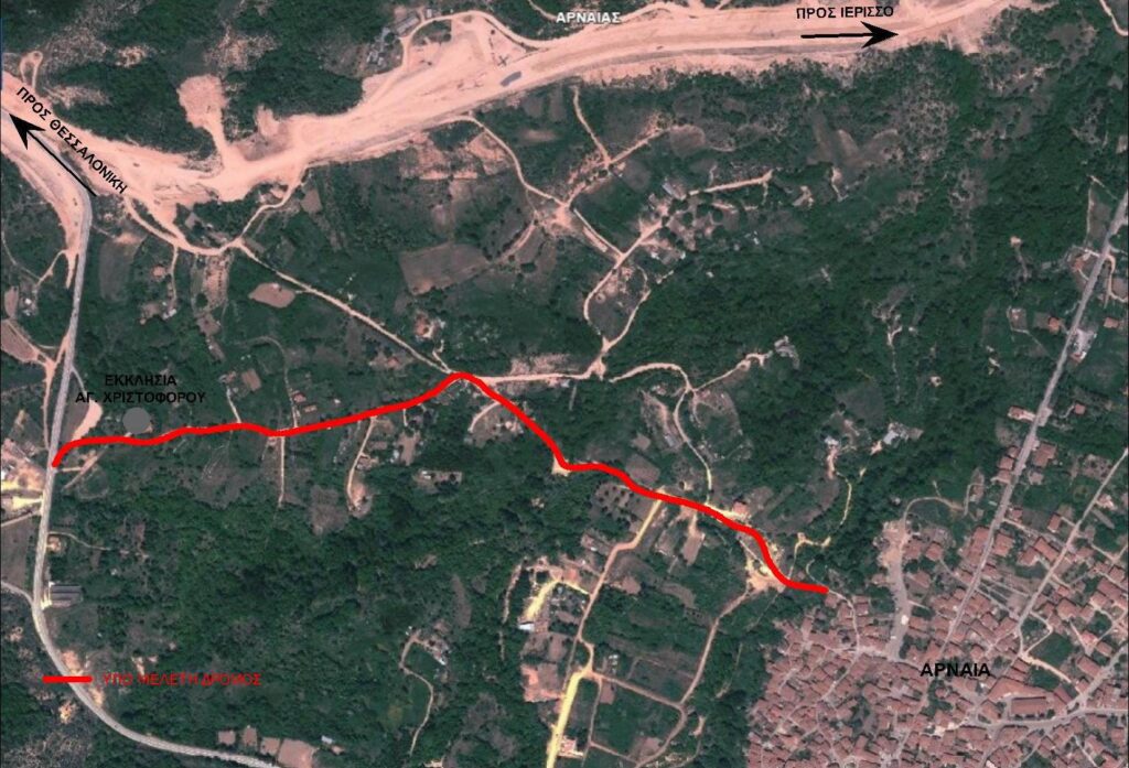 Αντικείμενο της σύμβασης αποτελεί η ασφαλτόστρωση και η βελτίωση των γεωμετρικών χαρακτηριστικών υφιστάμενης αγροτικής οδού που χωροθετείται δυτικά του οικισμού της Αρναίας και εξυπηρετεί την πρόσβαση στην ευρύτερη αγροτική περιοχή που εντοπίζεται κατά μήκος των οδών και συνδέει το δυτικό τμήμα του οικισμού με την Ε.Ο. Θεσσαλονίκης – Ιερισσού. Το συνολικό μήκος της υπό μελέτη οδού αντιστοιχεί σε 1,08χλμ, οι δε εργασίες που θα υλοποιηθούν χωρίζονται σε έργα οδοποιίας και σε υδραυλικά έργα για τη διαχείριση ομβρίων υδάτων και την αντιπλημμυρική προστασία της οδού.