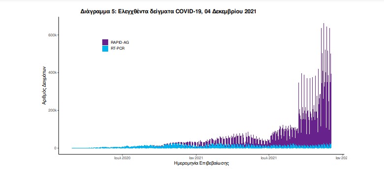 Δείγματα που έχουν ελεγχθεί: Από την 1η Ιανουαρίου 2020 μέχρι σήμερα, στα εργαστήρια που διενεργούν ελέγχους για τον νέο κορωνοϊό (SARS-CoV-2) και που δηλώνουν συστηματικά το σύνολο των δειγμάτων που ελέγχουν, έχουν συνολικά ελεγχθεί 7.574.133 κλινικά δείγματα ενώ από Μονάδες Υγείας και Κλιμάκια του ΕΟΔΥ που διενεργούν ελέγχους Rapid Ag έχουν ελεγχθεί 30.369.689 δείγματα. O μέσος όρος του επταημέρου είναι 366.619 δειγματοληπτικοί έλεγχοι.