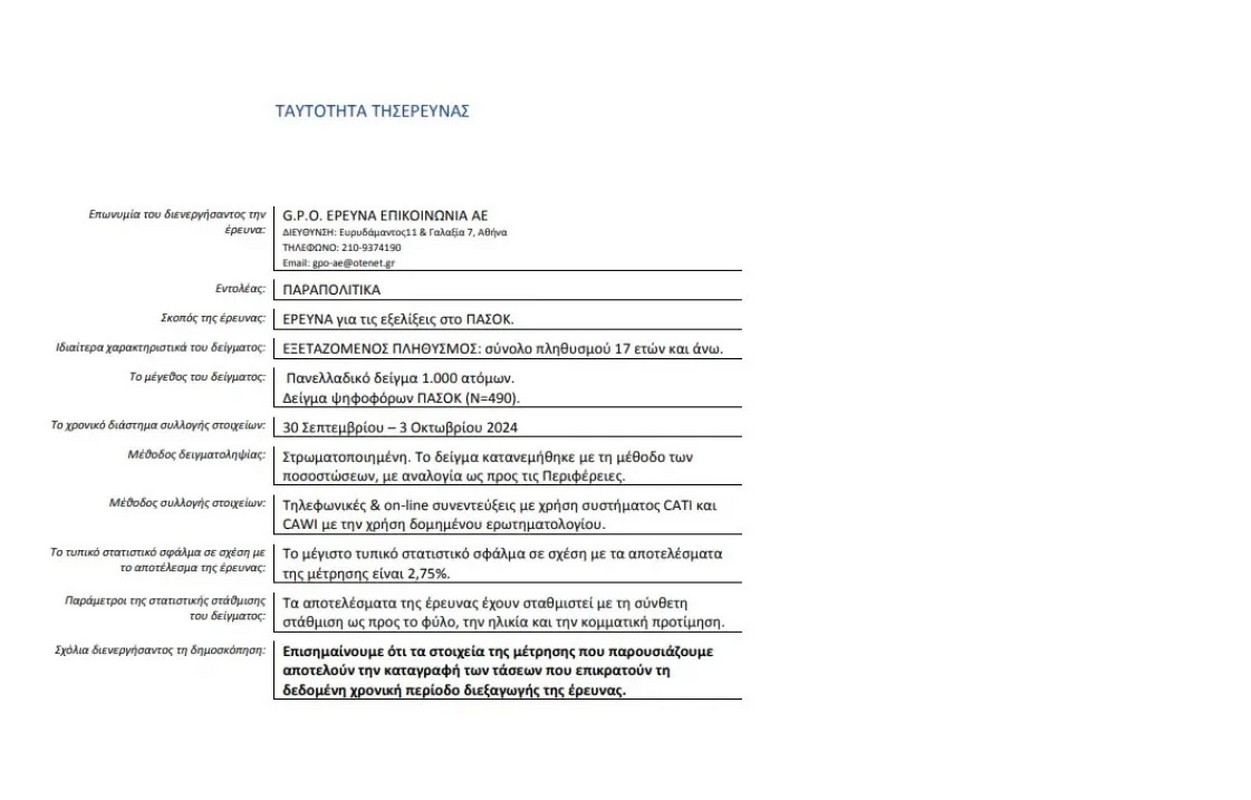 Ο κ. Ανδρουλάκης διατηρεί ελαφρά ισχυρότερο προβάδισμα μεταξύ εκείνων που δηλώνουν πρόθεση ψήφου στο ΠΑΣΟΚ – που σύμφωνα με την εκτίμηση της εταιρείας ανέρχονται πλέον στο 15,5% του εκλογικού σώματος – χωρίς ωστόσο αυτό να σημαίνει ότι προτίθενται να συμμετάσχουν στην εκλογική διαδικασία της 6ης Οκτωβρίου.