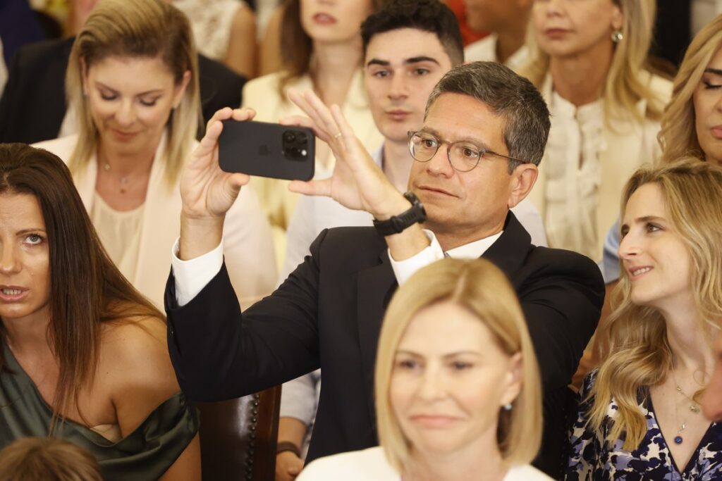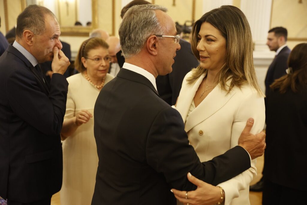 Στους χώρους του Προεδρικού Μεγάρου οι σέλφι και τα χαμόγελα έδιναν και έπαιρναν μεταξύ των κυβερνητικών στελεχών την ώρα που οι οικογένειές τους και άνθρωποι που τους συνόδευαν παρακολουθούσαν την διαδικασία.