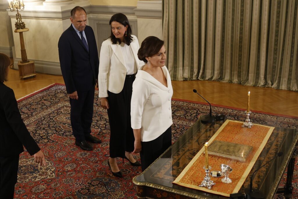(ΓΙΩΡΓΟΣ ΚΟΝΤΑΡΙΝΗΣ/EUROKINISSI)Ορκωμοσία των μελών της νέας Κυβέρνησης ενώπιον της Προέδρου της Δημοκρατίας Κατερίνας Σακελλαροπούλου, και παρουσία του Πρωθυπουργού Κυριάκου Μητσοτάκη, Τρίτη 27 Ιουνίου 2023.