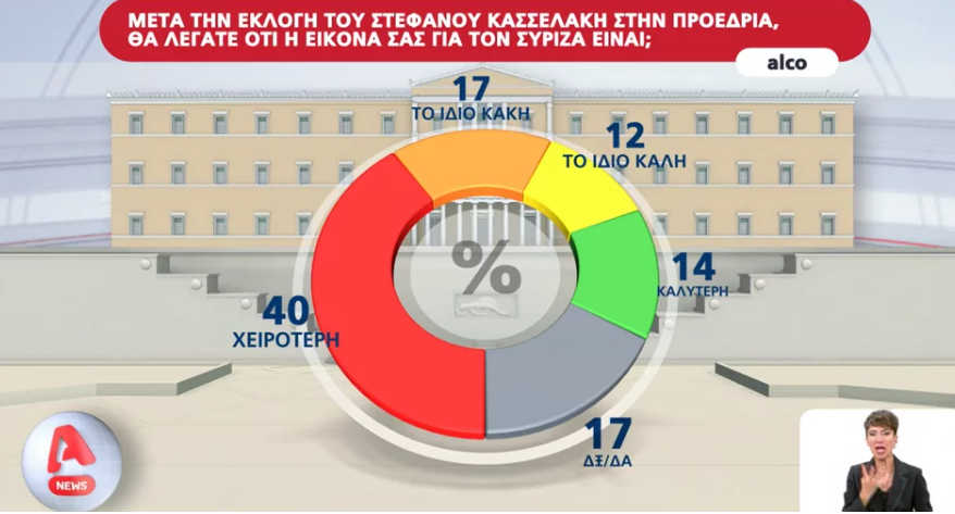 Δημοσκόπηση διενήργησε ο Alpha λίγο αφότου το κόμμα της αντιπολίτευσης άλλαξε πολιτικό αρχηγό.