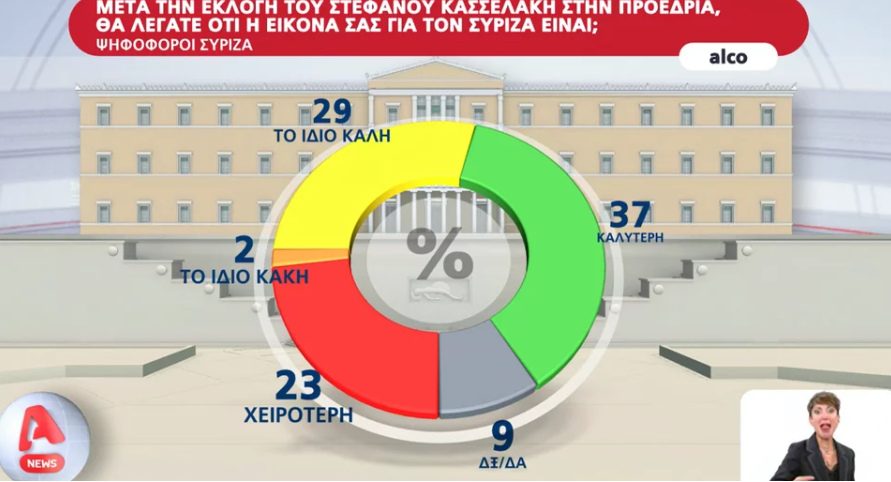 Παράλληλα, οι πολίτες κλήθηκαν επίσης να απαντήσουν στο ερώτημα σε σχέση με την εικόνα του ΣΥΡΙΖΑ μετά την εκλογή του Στ. Κασσελάκη.