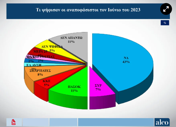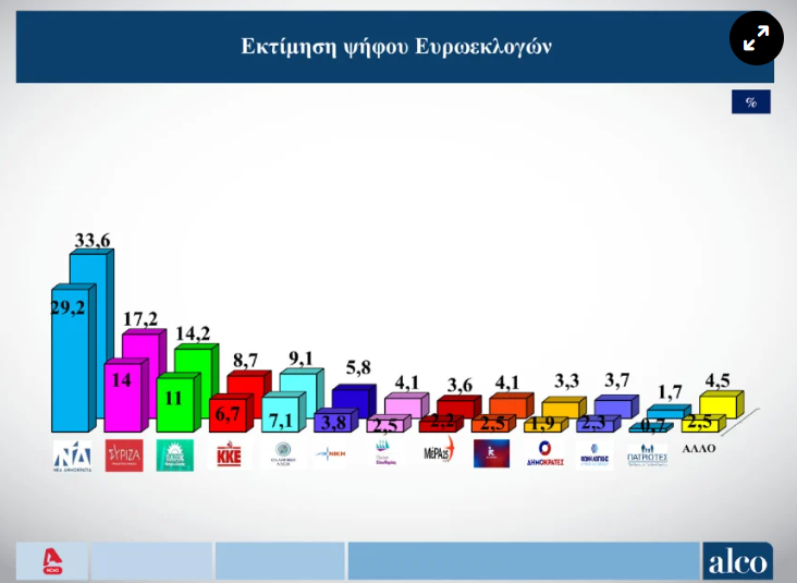 «Μάχη» μεταξύ ΠΑΣΟΚ – ΣΥΡΙΖΑ για τη δεύτερη θέση καταγράφει δημοσκόπηση της ALCO για λογαριασμό του Alpha.