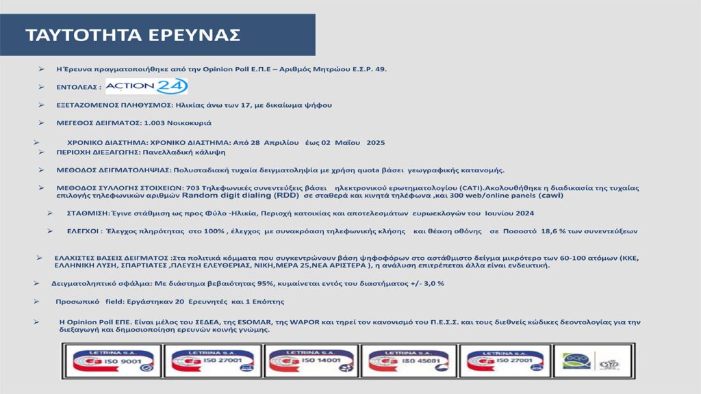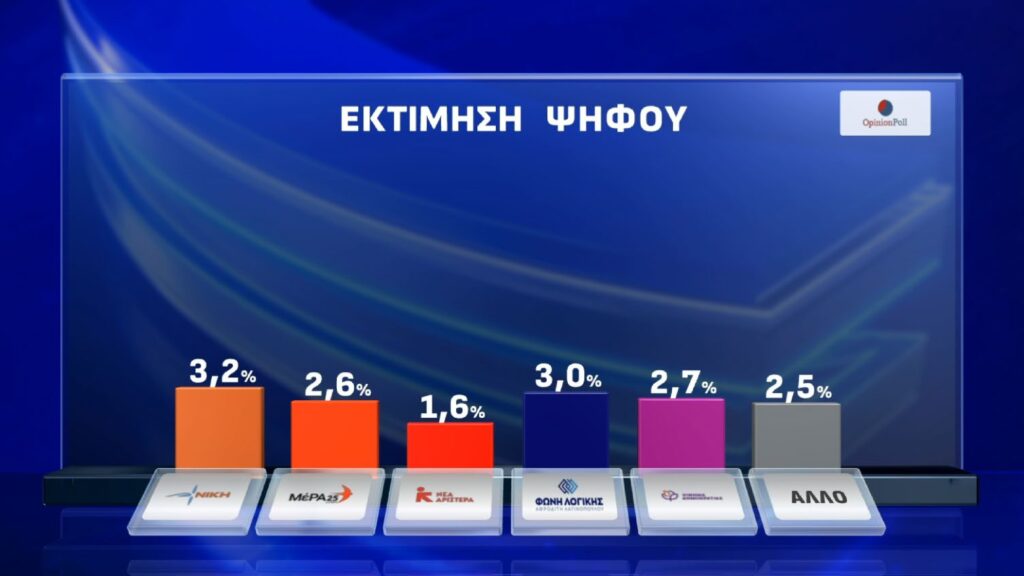Στο κεντρικό δελτίο ειδήσεων του ACTION 24 παρουσιάστηκε το πολιτικό βαρόμετρο της Opinion Poll από τον διευθυντή ερευνών Ζαχαρία Ζούπη.