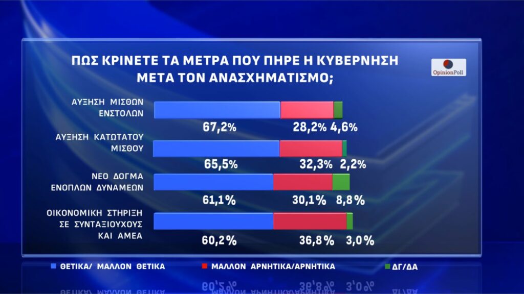 Σε σχέση με τα μέτρα και τις πρωτοβουλίες της Κυβέρνησης οι θετικές απόψεις είναι: