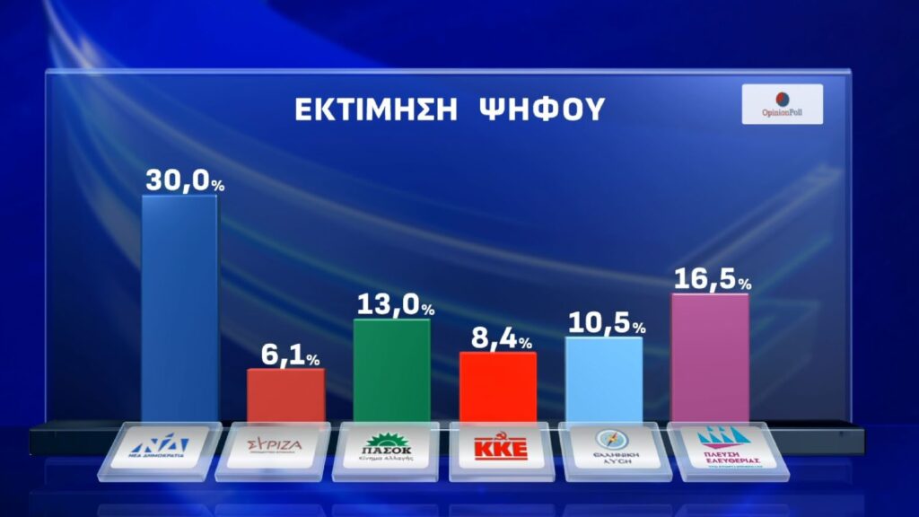 Δημοσκόπηση: Άνοδο και 30% για ΝΔ – Αποδοχή των νέων μέτρων – Δεν θέλει προοδευτικό μέτωπο και Τσίπρα η πλειοψηφία