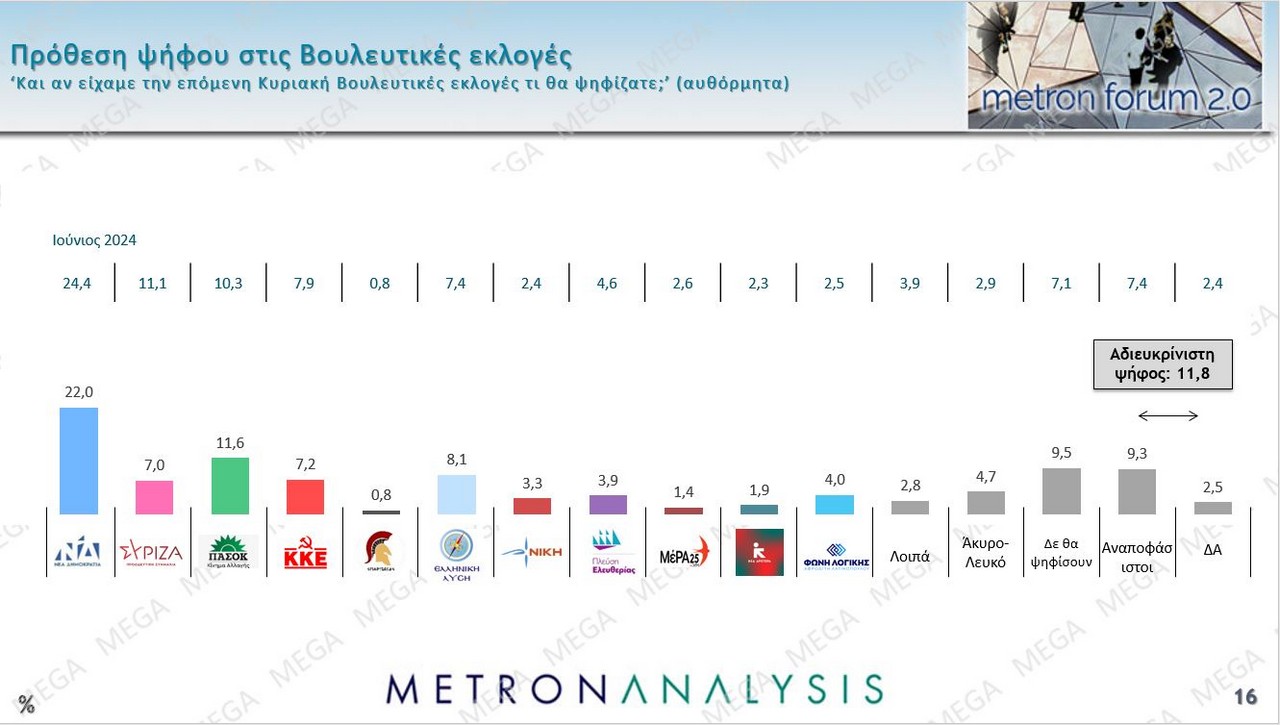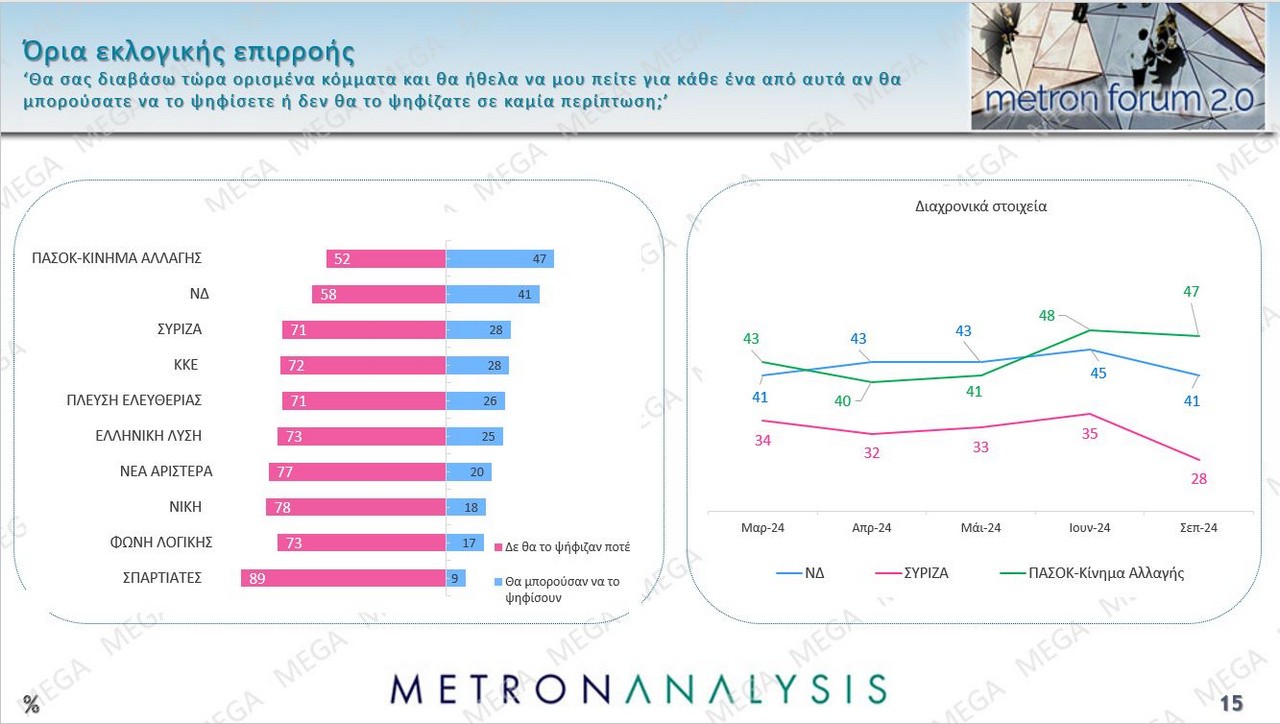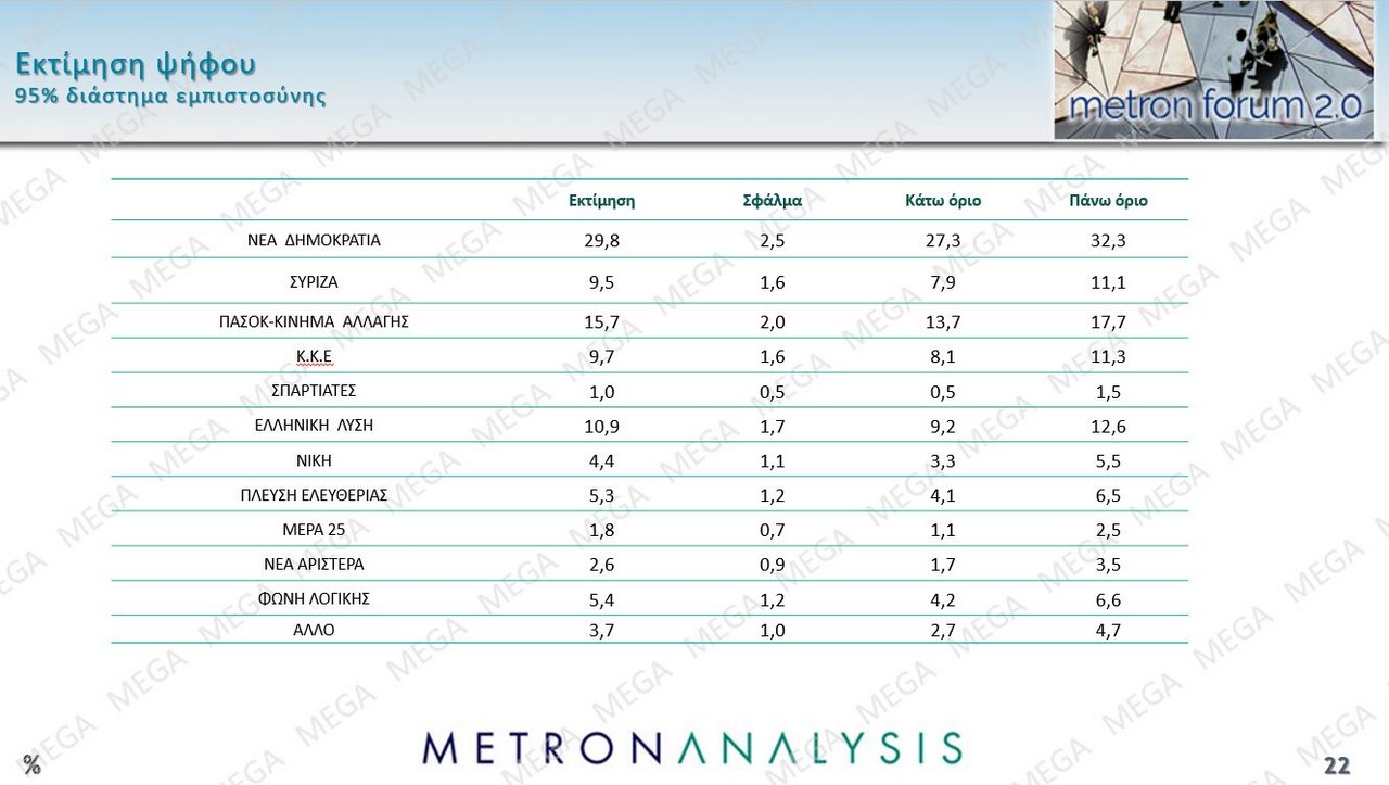 Όλα αυτά συμπυκνώνονται και στην εκτίμηση ψήφου που κάνει η Metron Analysis.