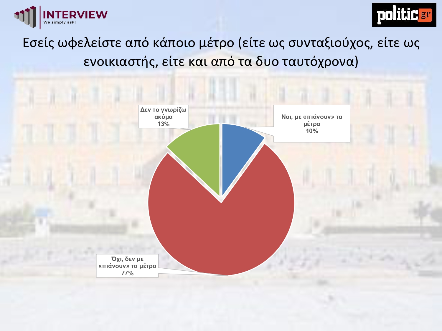Το 77% των πολιτών δηλώνει ότι δεν ωφελήθηκε από κάποιο κυβερνητικό μέτρο. Μόνο το 10% λέει ότι τα μέτρα «τους έπιασαν», ενώ 13% δεν είναι ακόμη σίγουρο.