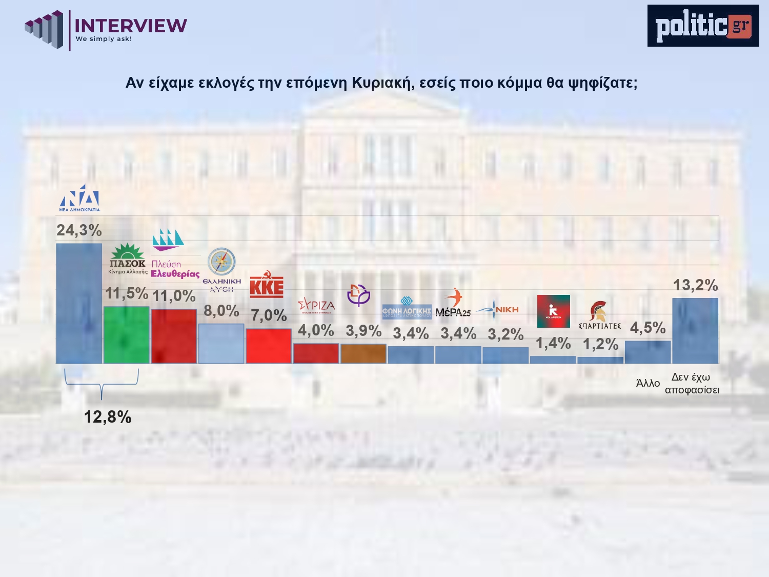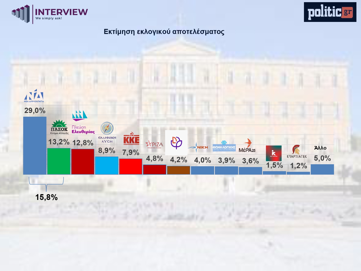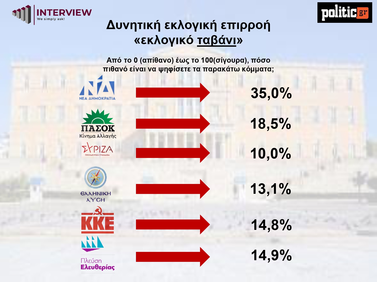 Δημοσκόπηση Interview: Ανάκαμψη για ΝΔ, δεύτερο το ΠΑΣΟΚ – 7 στους 10 βλέπουν υπερφορολόγηση πίσω από τις παροχές Μητσοτάκη